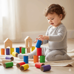 Los rollos de papel higiénico pintados son un material desestructurado, muy económico, que potencia la creatividad y el desarrollo motor. Al ser ligeros, exigen una mayor precisión en la motricidad fina para el apilamiento y el equilibrio. Pintarlos permite trabajar la clasificación por color y la secuenciación, mientras que su forma tubular fomenta el juego abierto (como túneles o piezas para encajar).